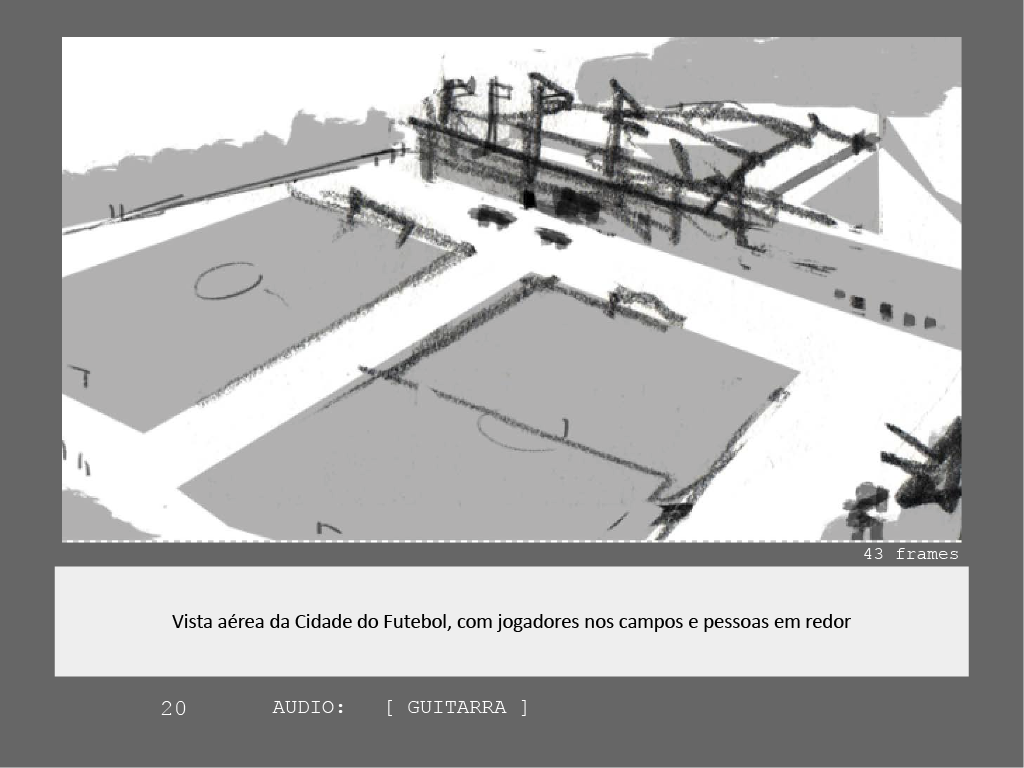 While João Lopes da Silva [Sardinha em Lata] was working on graphic development, Manel Sacadura [Homy Animation] took charge of setting the action, drawing storyboard and producing the animatic. Then followed a frantic animation-making phase for a numerous team of animators set by Sardinha Em Lata. We contributed with the 3D ball/ goal net shots, and mainly with great lot of after-effects animation, compositing and effects.