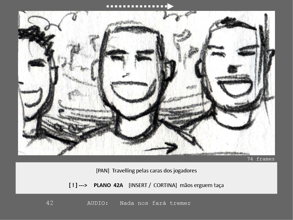While João Lopes da Silva [Sardinha em Lata] was working on graphic development, Manel Sacadura [Homy Animation] took charge of setting the action, drawing storyboard and producing the animatic. Then followed a frantic animation-making phase for a numerous team of animators set by Sardinha Em Lata. We contributed with the 3D ball/ goal net shots, and mainly with great lot of after-effects animation, compositing and effects.