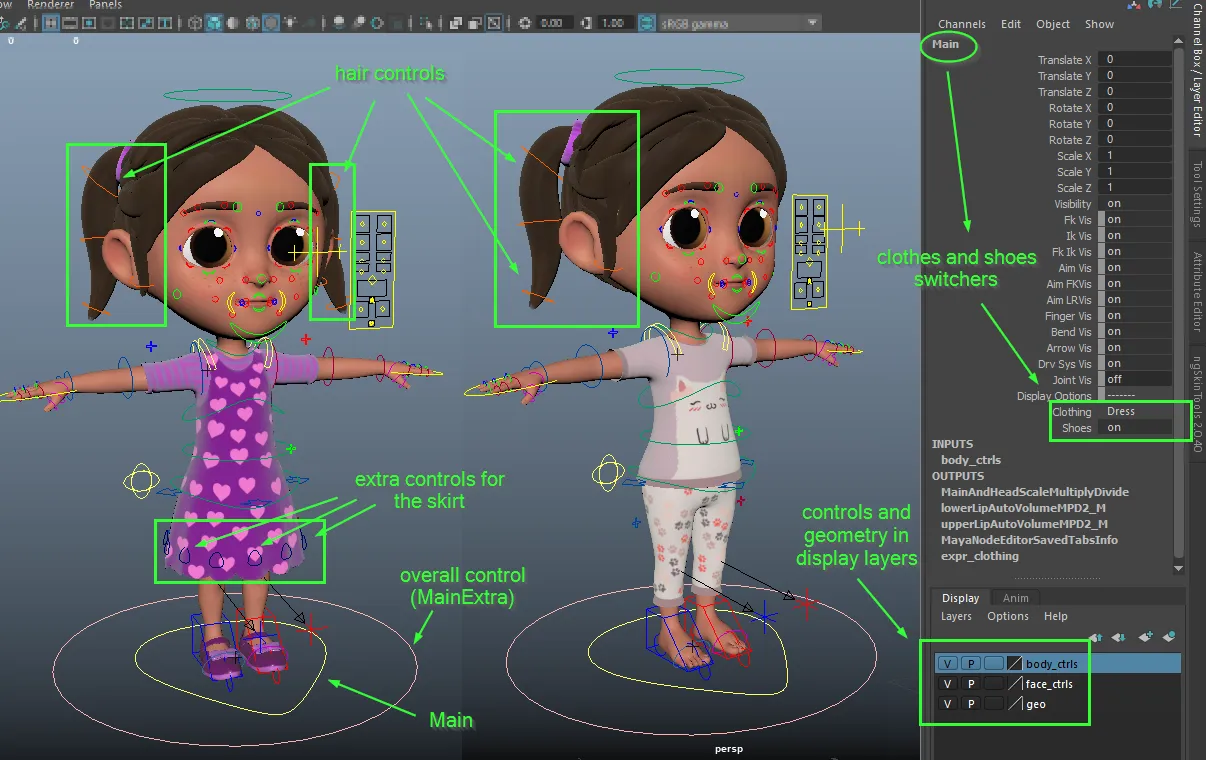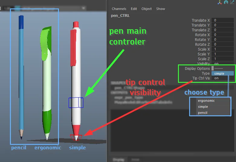 Aqui estão alguns exemplos de notas sobre controladores, preparadas para os animadores.